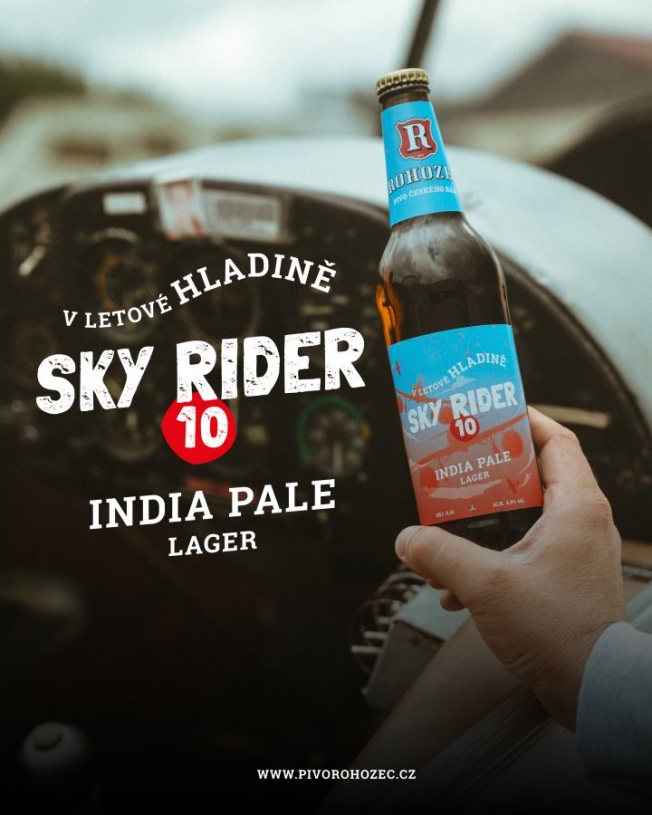 Sky Rider spojuje výraznou hořkost amerických a anglických chmelů s lehkým, svěžím tělem. Nese v sobě odkaz pilotů RAF, kteří po vylodění v Normandii začali do přídavných nádrží svých Spitfirů místo paliva plnit pivo – aby ho doručili unaveným vojákům přímo na frontu. Vznikla „pivní bomba“ – sud zavěšený pod křídly, let bez výzbroje, ale s posláním.